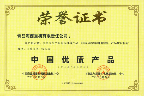 優(yōu)質(zhì)產(chǎn)品榮譽(yù)證書(shū)