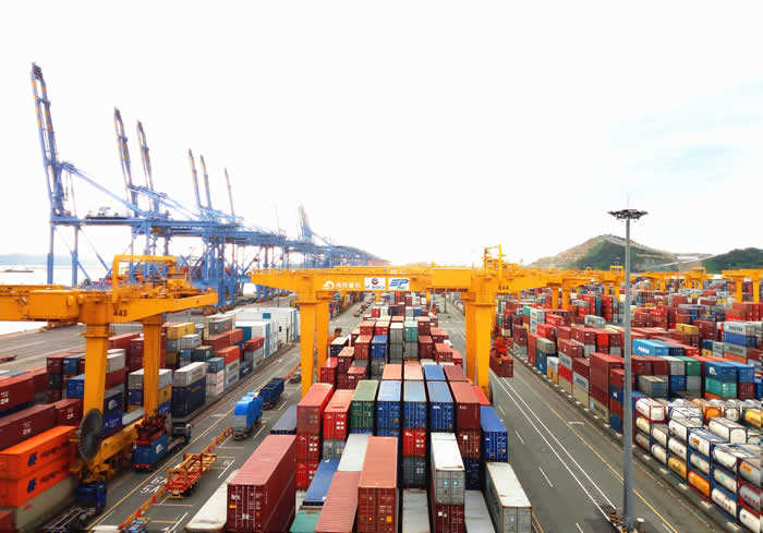 軌道吊作業(yè)中,釜山新港一道亮麗的風景