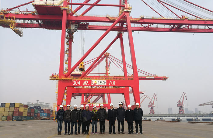 次日,在日照港客戶的大力支持下,考察團(tuán)隨同我司工作人員前往日照港,參觀考察了我司為其定制生產(chǎn)的大型岸橋、場橋、糧食碼頭門座起重機等設(shè)備,使考察團(tuán)對設(shè)備的現(xiàn)場使用情況有了更進(jìn)一步了解。