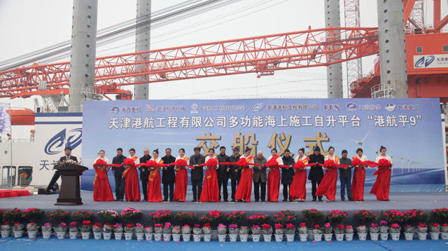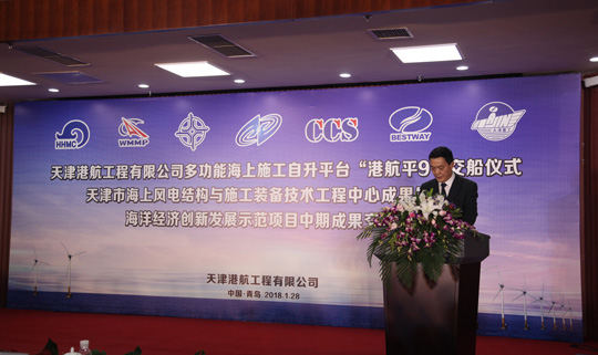 1月28日上午,目前國內(nèi)起重量最大的風(fēng)電施工平臺——“港航平9”交付儀式在青島海西重機舉行,天津海洋局、天津港集團、中交機電局、風(fēng)電協(xié)會、武漢船機海西重機等相關(guān)單位共同見證了這一歷史性時刻。