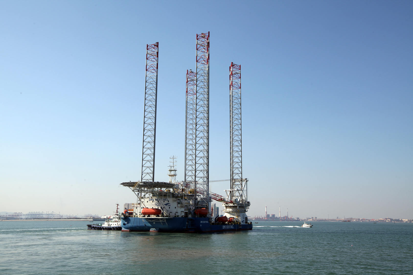 10月31日,時維三秋的膠州灣萬里晴空、波瀾不驚,遙襟甫暢,一碧萬頃。上午11點,H8-2海工平臺發(fā)運現(xiàn)場鞭炮齊鳴,汽笛高歌,天籟生清風(fēng),纖歌遏云鳥。繼H8-3平臺之后,QMS SENTINEL 這個醉臥于青黃之交卻不甘寂寞的斗士終于踏上了駛向萬里征途的航船。