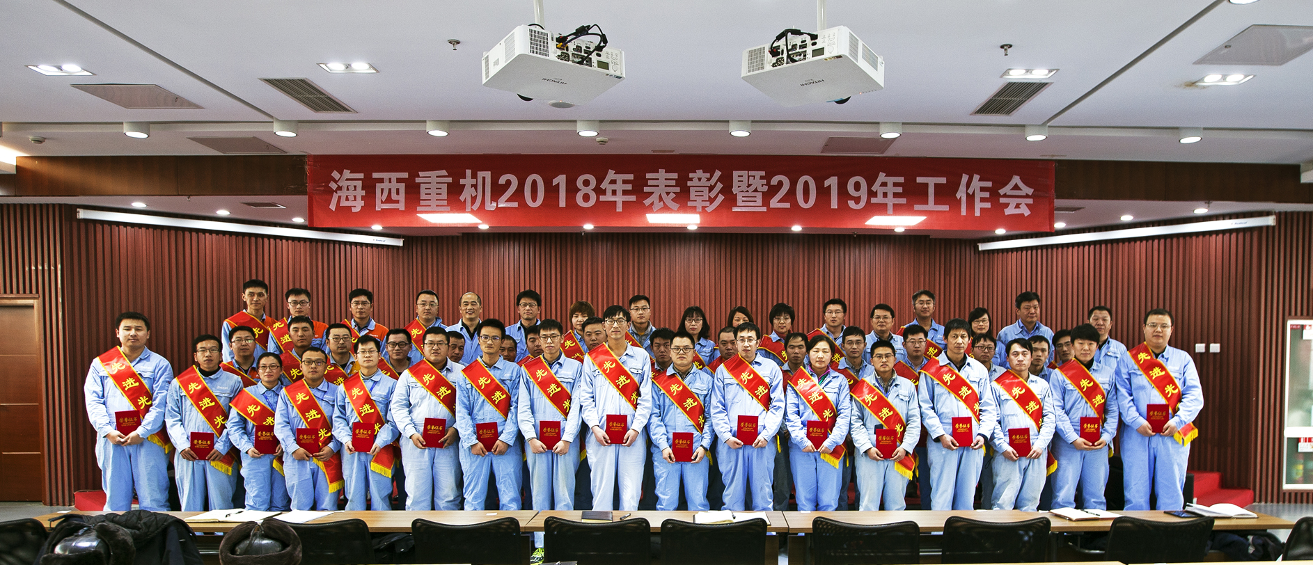 1月19日,海西重機(jī)2018年表彰暨2019年工作會(huì)在901會(huì)議室順利召開(kāi),公司主管及以上管理人員、2018年度優(yōu)秀管理者、優(yōu)秀員工參加會(huì)議,公司黨委書(shū)記、董事長(zhǎng)鄧振山主持會(huì)議。