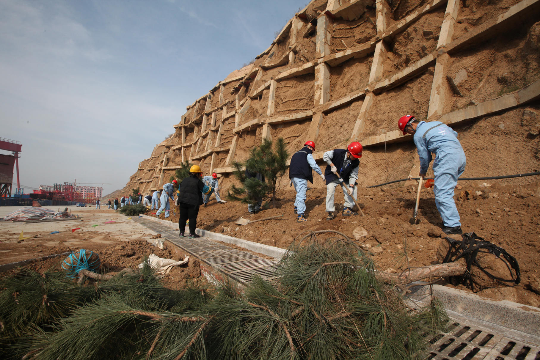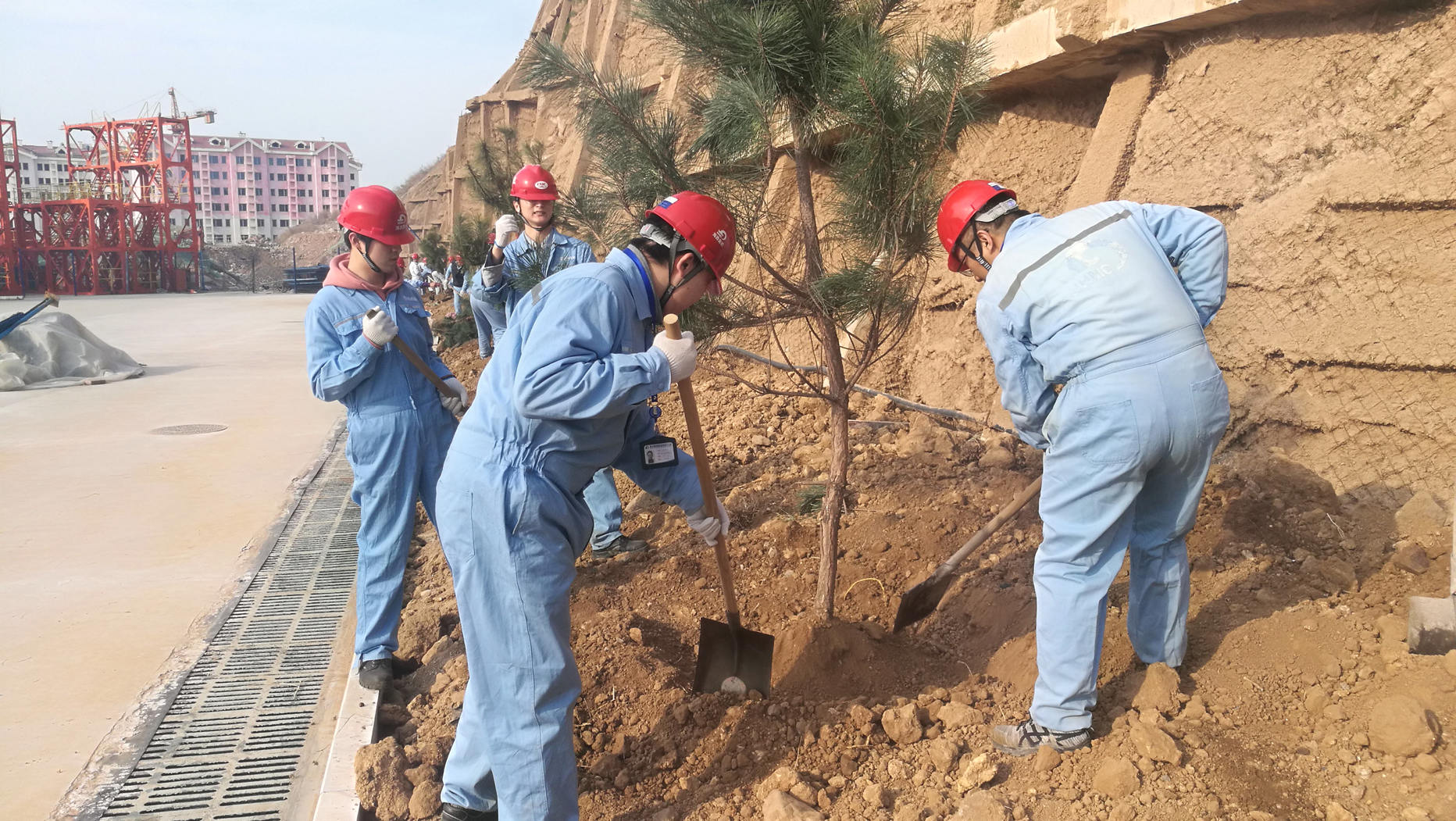瘠地力挖苗培入,荒坡手植樹皆嘉。三倆人,一棵樹。在廠區(qū)的新建護坡下,大家熱火朝天的忙著,紛紛揮鍬鏟土,定點挖坑,放苗回填,你扶我植,好不熱鬧。在春天植入希望,我們栽種的不僅是常青樹,更是快樂和責任。