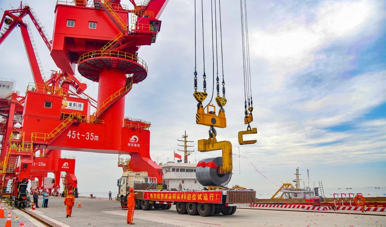 3臺門機(jī)應(yīng)用于用戶剛剛投產(chǎn)的6#泊位——日照鋼鐵精品基地配套成品碼頭工程泊位,泊位為4萬噸級雜貨泊位,長度265米,年設(shè)計(jì)通過能力120萬噸。作為日照港山鋼碼頭有限公司成立以來建成的第一個泊位,將與山鋼集團(tuán)日照公司實(shí)現(xiàn)“前港后廠”一體化運(yùn)營,滿足成品及部分原料海路運(yùn)輸?shù)钠惹行枨?,為鋼鐵精品基地開辟最便捷、最經(jīng)濟(jì)的通道,推動“鋼港”發(fā)展邁上新臺階。