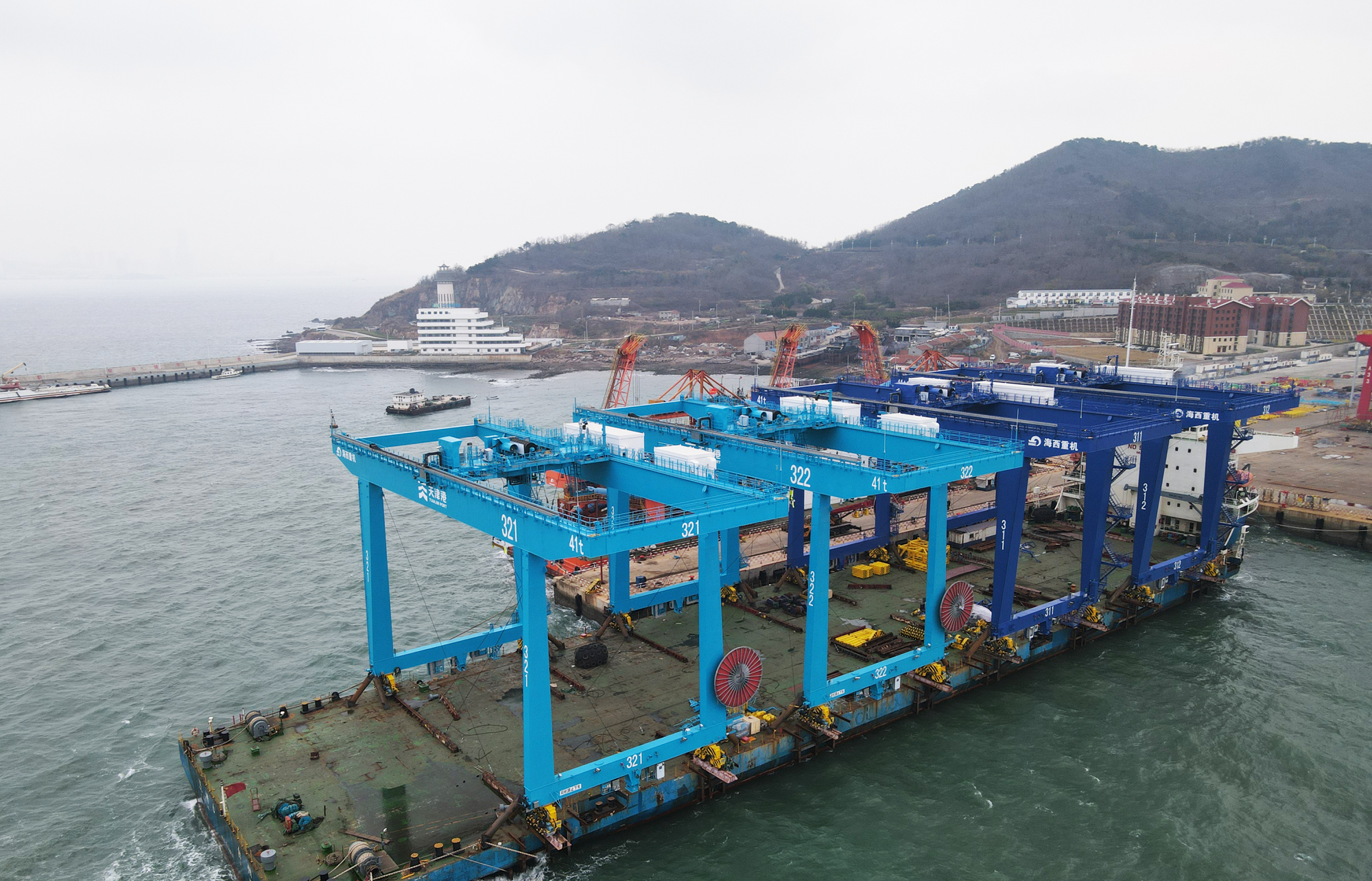 11月19日,裝載著天津港北疆港區(qū)C段智能化集裝箱碼頭一期工程項(xiàng)目第一批4臺藍(lán)色自動化軌道吊的運(yùn)輸船“泛洲6”順利從中國船舶集團(tuán)旗下武漢船機(jī)海西重機(jī)公司碼頭起航,發(fā)往天津港。