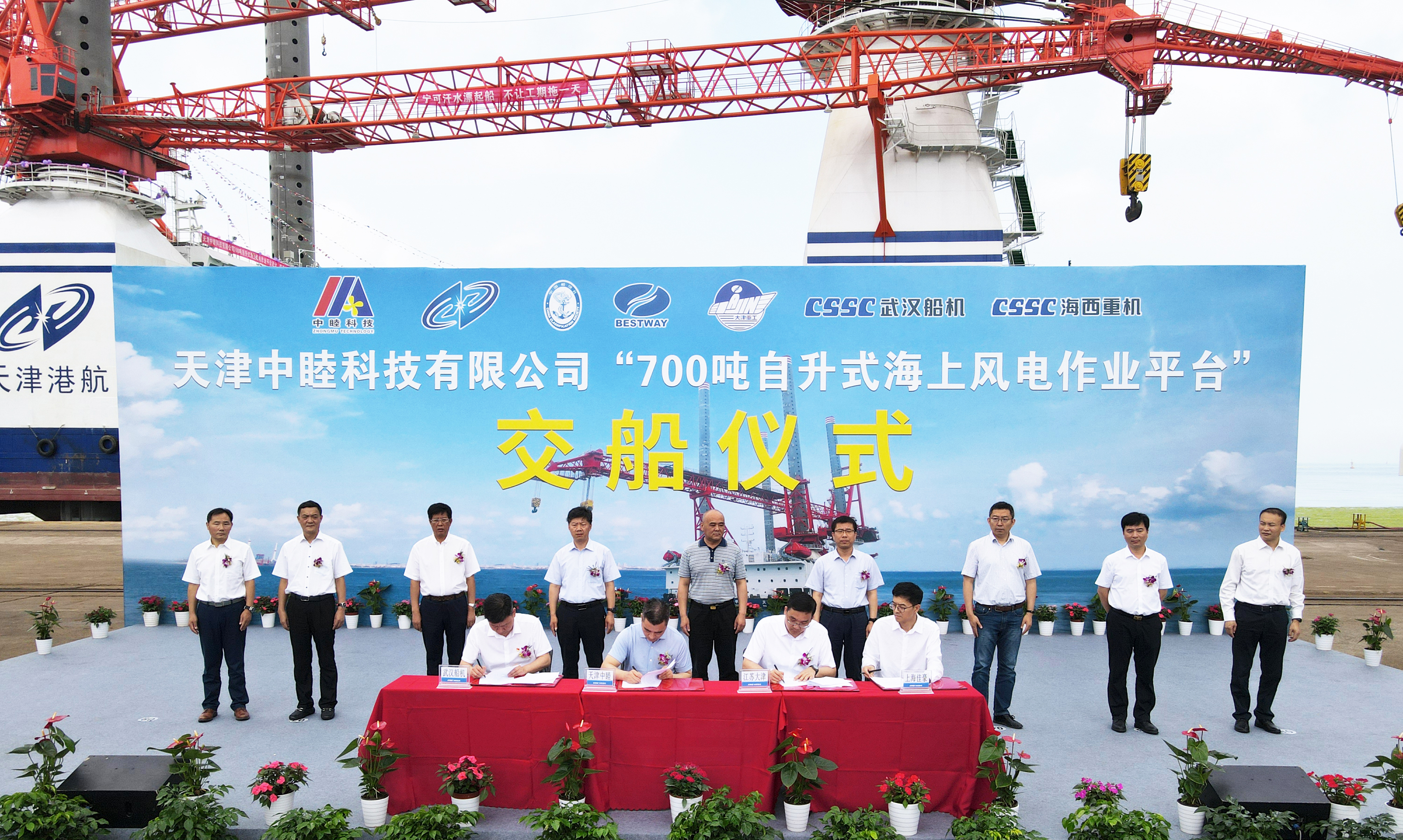 6月28日上午,天津中睦科技有限公司700T自升式海上風(fēng)電作業(yè)平臺——“港航平7”在中國船舶集團(tuán)旗下武漢船機(jī)海西重機(jī)順利交付。
