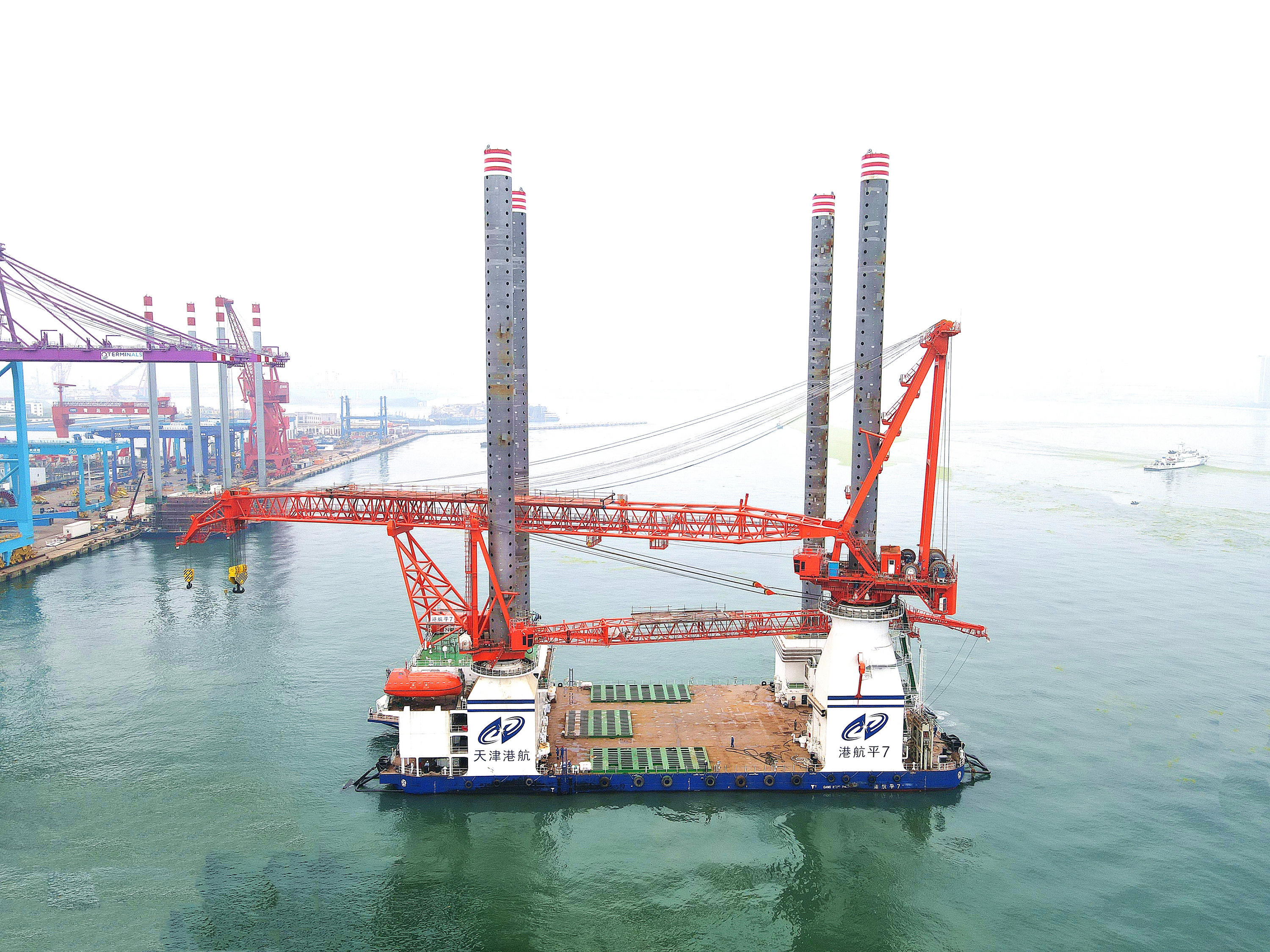 “港航平7”正式服役后,可與1200T全回轉(zhuǎn)自升式海上平臺——“港航平9”、5000噸風(fēng)電工藝駁船——“港航駁5”、世界最大打擊能量MHU3500S液壓沖擊錘等船機(jī)設(shè)備構(gòu)建更加完備的風(fēng)電施工專業(yè)設(shè)備體系,將有效緩解海上風(fēng)電施工設(shè)備緊張壓力,提升海上風(fēng)電規(guī)?;鳂I(yè)能力,對貫徹落實(shí)黨中央、國務(wù)院關(guān)于碳達(dá)峰、碳中和重大決策部署,確?!笆奈濉遍_好局、起好步,促進(jìn)國家綠色能源的發(fā)展貢獻(xiàn)力量。