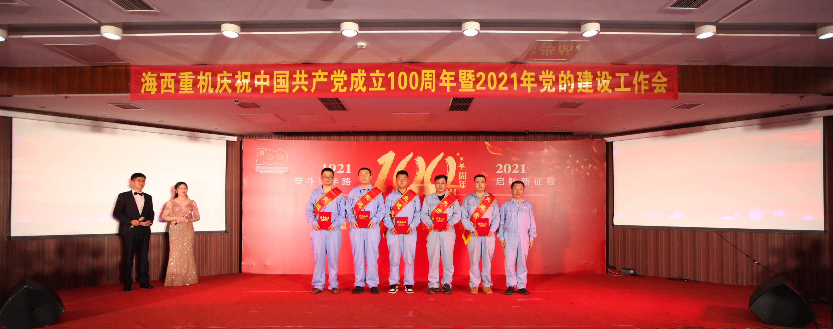 精彩紛呈的節(jié)目令在場觀眾意猶未盡。匯演告一段落后,公司黨委副書記、總經(jīng)理張懷志宣讀公司黨委關于表彰2020-2021年度“一先兩優(yōu)”和“質量先進”的決定,公司領導為先進黨支部、質量先進班組、質量標兵、模范黨員頒獎并合影留念。會上簽訂了“準時發(fā)運”目標責任書。黨旗飄揚在生產(chǎn)一線,黨徽閃耀在崗位上,先進模范們沖鋒在攻堅克難的最前線,是海西人學習的榜樣。