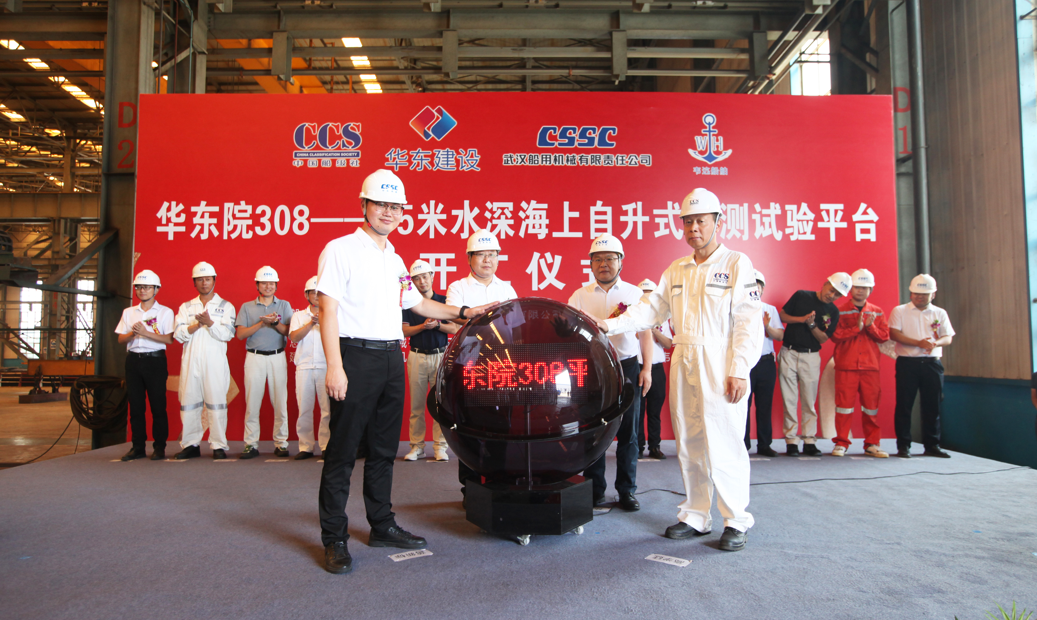 8月26日,中國船舶集團旗下武漢船機海西重機公司承建的華東院308——75米水深海上自升式勘測試驗平臺順利開工。浙江華東建設(shè)工程有限公司、中國船級社青島分社、杭州逸秀船舶技術(shù)服務(wù)有限公司、上海韋迒船舶科技有限公司、中國船舶工業(yè)貿(mào)易有限公司、武漢船用機械有限責(zé)任公司、青島海西重機有限責(zé)任公司代表出席儀式。