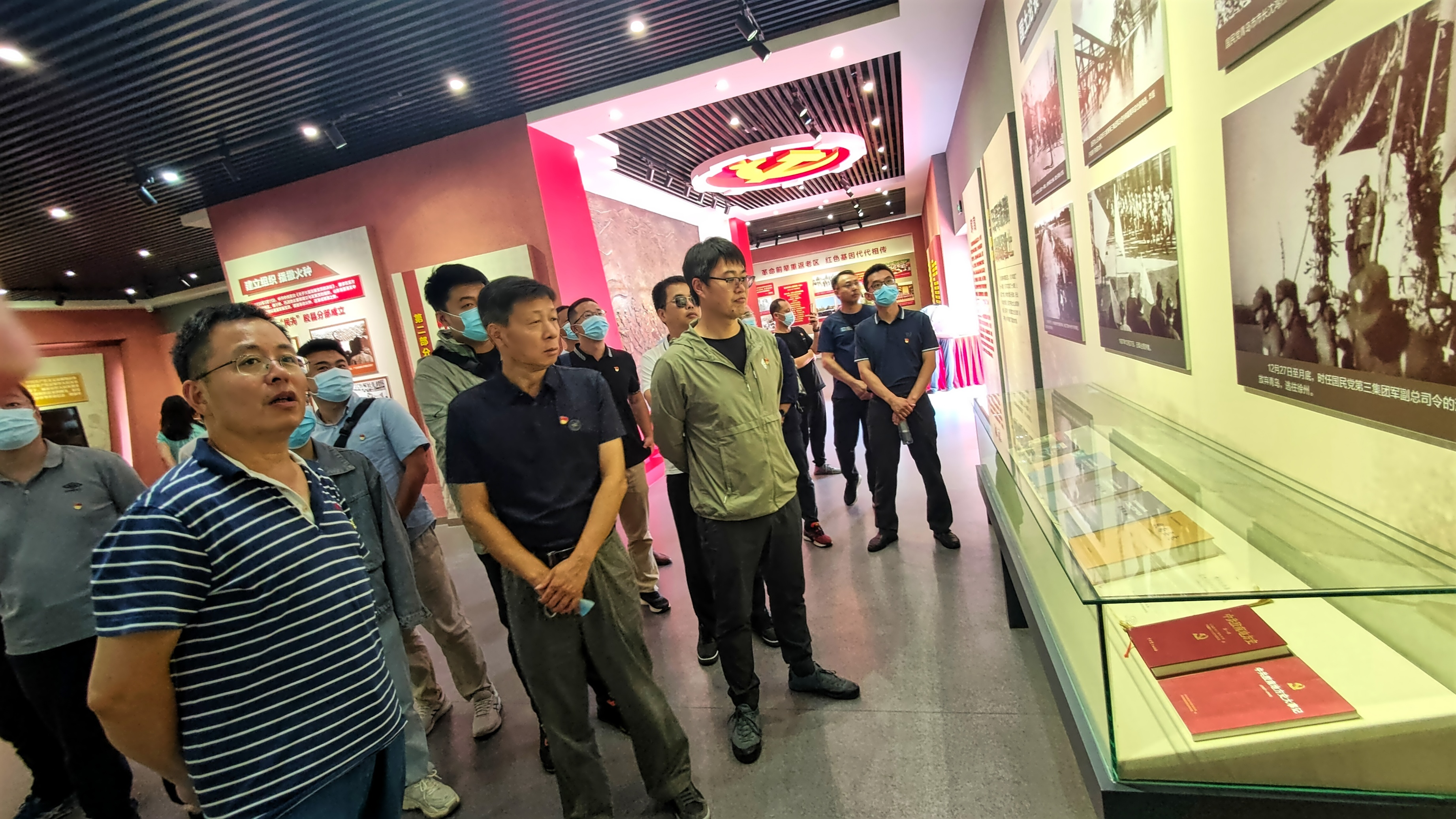 基地進(jìn)門的甬道上鐫刻了楊家山里從第一顆革命火種誕生到最終革命勝利的革命歷程。面對黨旗,由CCS船級社青島分社副總經(jīng)理高學(xué)廷和海西重機(jī)黨委副書記、總經(jīng)理蔣新標(biāo)共同領(lǐng)誓,重溫了入黨誓詞。隨后全體黨員參觀學(xué)習(xí)了楊家山里革命史展覽館,“日軍鐵蹄 踐踏國土”“中流砥柱 使命擔(dān)當(dāng)”“百折不撓 浴血奮戰(zhàn)”“紅色堡壘 銅墻鐵壁”“紅色基因 代代傳承”5個板塊,充分展現(xiàn)了1938年春從楊家山里“團(tuán)練”成立至1945年珠山縣委在東南崖成立期間,楊家山里人民前仆后繼、頑強(qiáng)奮斗,和全國人民一道奪取了抗日戰(zhàn)爭的勝利。