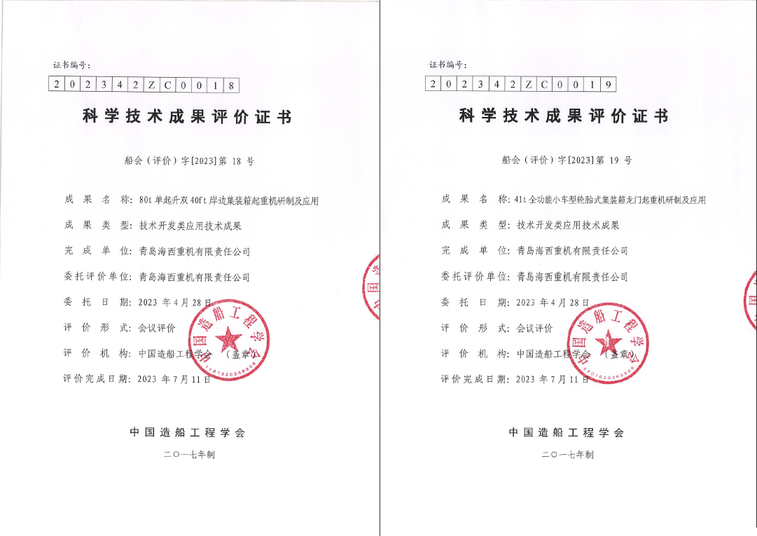 近日,中國(guó)船舶集團(tuán)旗下武漢船機(jī)海西重機(jī)公司“80t單起升雙40ft岸邊集裝箱起重機(jī)研制及應(yīng)用”、“41t全功能小車(chē)型輪胎式集裝箱龍門(mén)起重機(jī)研制及應(yīng)用”兩項(xiàng)科技成果通過(guò)中國(guó)造船工程學(xué)會(huì)科學(xué)技術(shù)成果評(píng)價(jià),與會(huì)專(zhuān)家一致認(rèn)為,整體技術(shù)水平達(dá)到國(guó)際先進(jìn)水平。