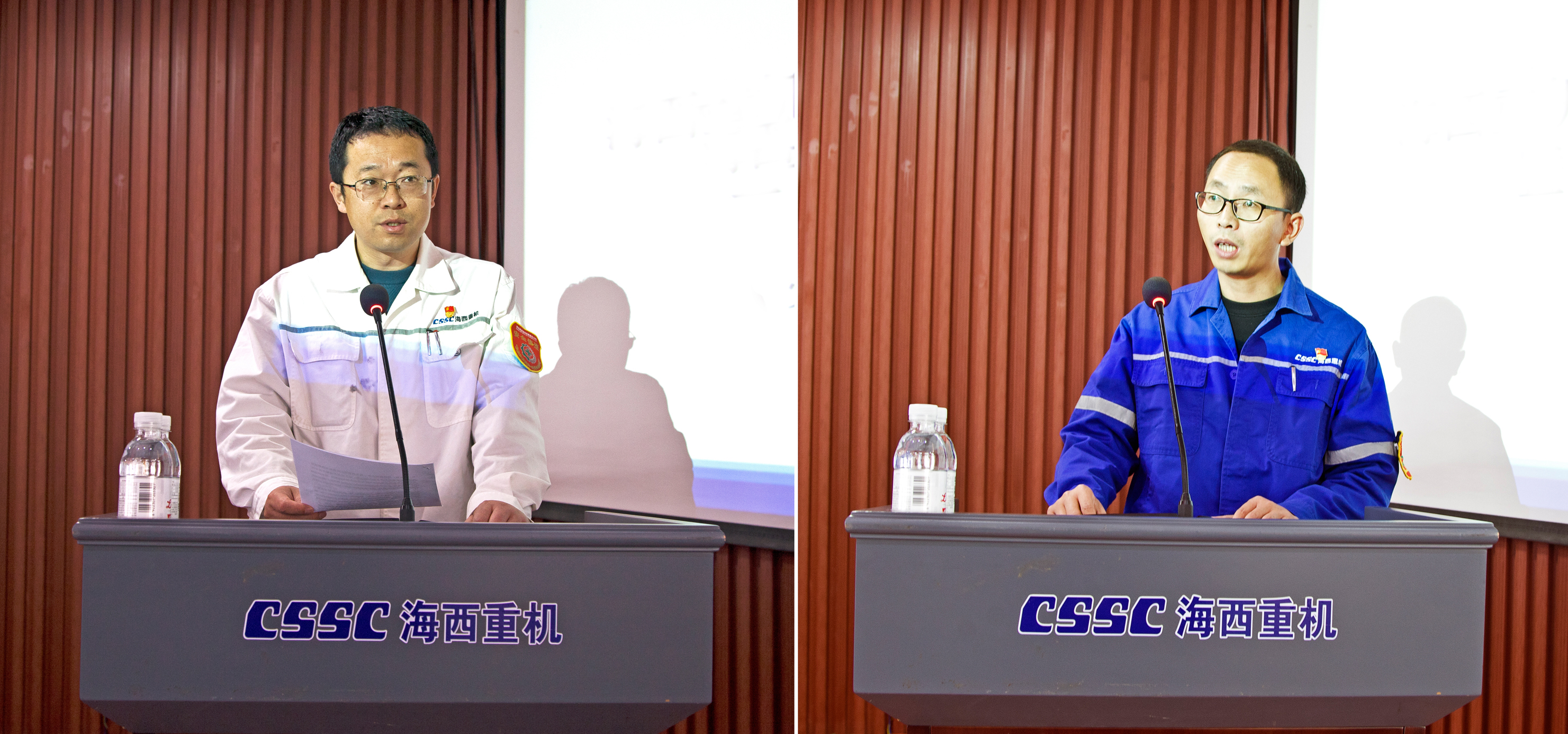 會上,海西重機海工部部長商圣偉代表生產(chǎn)部門進行發(fā)言,分享了去年海工項目做的好的工作經(jīng)驗,同時對今年安全生產(chǎn)工作進行表態(tài),將帶領(lǐng)海工項目團隊順利完成公司黨委交付的任務(wù),為公司高質(zhì)量發(fā)展交上一份滿意的答卷;項目管理部副部長柯誠同志分享了在濟寧港航龍拱港批量設(shè)備交機期間的工作體會,從“品牌、執(zhí)行和學(xué)習(xí)”三個方面講述了龍拱港干部職工迎難而上、頑強拼博,埋頭苦干、善干巧干、敢于攻堅克難的工作作風(fēng)。