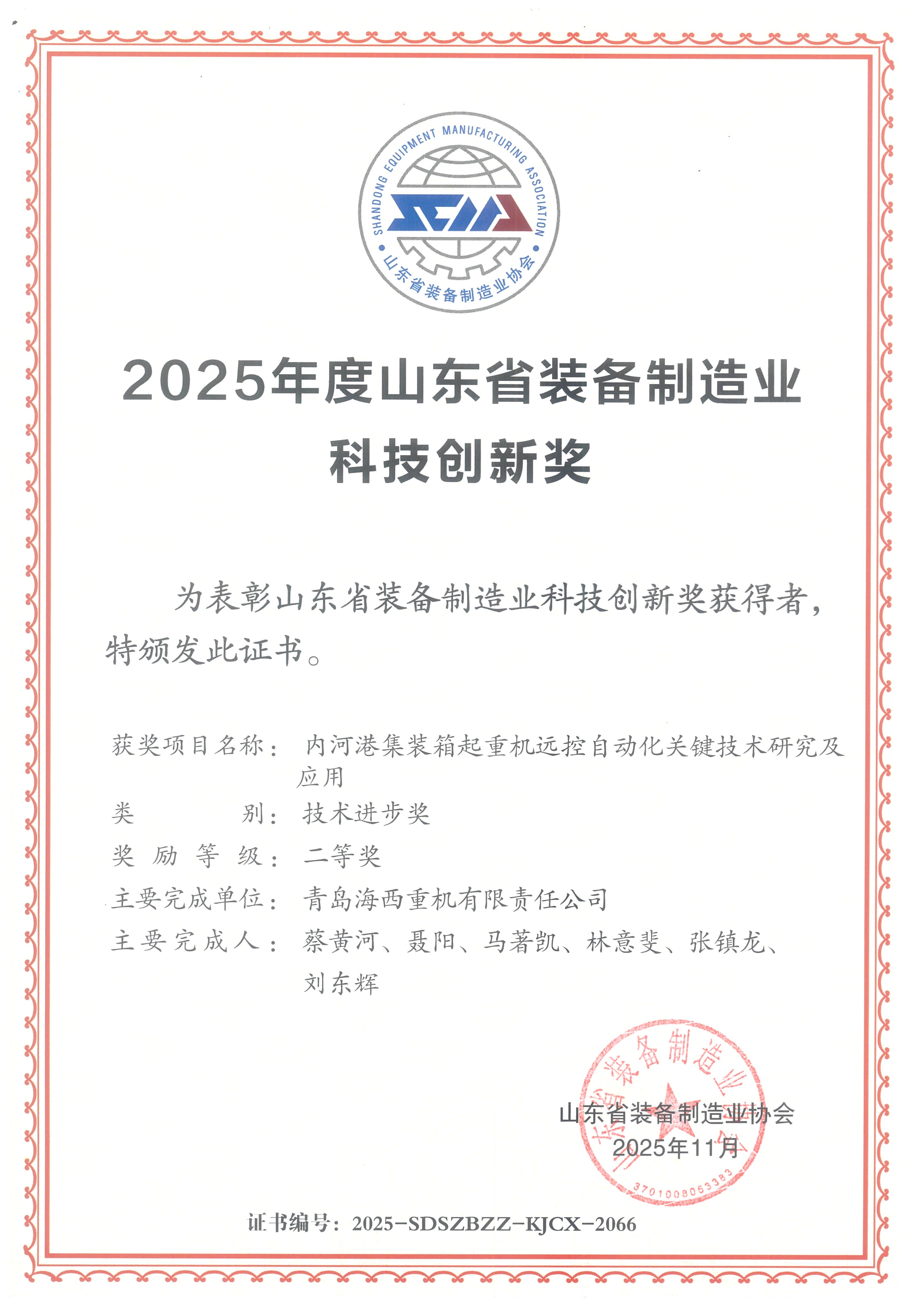 此次獲獎充分體現(xiàn)了海西重機在技術(shù)創(chuàng)新方面的實踐和突破。未來,海西重機將以此次獲獎為契機,繼續(xù)加大研發(fā)投入,深化產(chǎn)學研合作,持續(xù)提升核心競爭力,不斷推動行業(yè)高質(zhì)量發(fā)展,為交通強國、海洋強國建設(shè)貢獻力量。