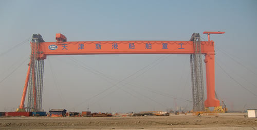 青島海西重機(jī)有限責(zé)任公司總承制的天津新港船舶重工有限責(zé)任公司臨港造修船基地首臺(tái)600噸×207米龍門吊,9月23日上午開始預(yù)提升,9月26日下午13點(diǎn)36分開始正式提升,于10月7日下午16點(diǎn)53分順利安裝到位,創(chuàng)下了國內(nèi)同類型龍門吊提升時(shí)間最短紀(jì)錄。