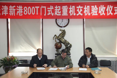 2012年4月7日,天津新港船舶重工第二臺(tái)800噸龍門(mén)吊交機(jī)驗(yàn)收儀式在業(yè)主方隆重舉行。