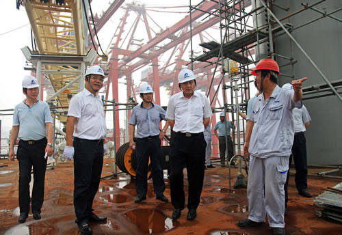 7月15日,中船重工副總經(jīng)理董強(qiáng)深入海西重機(jī)生產(chǎn)現(xiàn)場,查看了在制的90米自升式海洋平臺項目、為海南洋浦批量研制的岸橋、輪胎吊項目以及出口意大利的超巴拿馬岸橋(60t-62m岸橋)項目等,并就產(chǎn)品種類調(diào)整實效、安全生產(chǎn)責(zé)任制落實等與各級干部進(jìn)行交流,提出了指導(dǎo)意見。