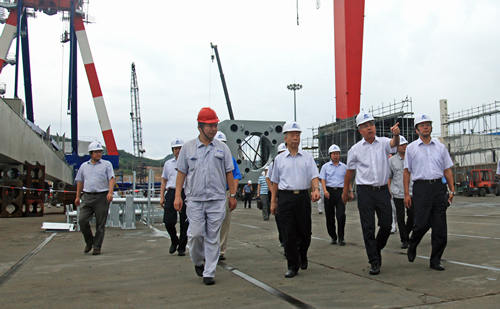 李長印一行實地考察了青島海西重機生產(chǎn)現(xiàn)場,查看了公司在制的90米自升式海洋平臺、海南洋浦批量岸橋及意大利超巴拿馬岸橋等公司關(guān)重項目,聽取了公司董事長何紀(jì)武關(guān)于產(chǎn)品生產(chǎn)、市場經(jīng)營、企業(yè)發(fā)展等方面的匯報,對海西重機強化創(chuàng)新、調(diào)整企業(yè)發(fā)展定位取得的成效給予了肯定。