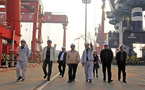 董樹奎一行實地考察了公司生產(chǎn)、組裝及發(fā)運現(xiàn)場,對公司在制的各類大型港口起重設備、海工平臺等進行了詳細考察。聽取了海西重機總經(jīng)理孫國慶關于公司概況、生產(chǎn)經(jīng)營、技術創(chuàng)新、企業(yè)管理及戰(zhàn)略規(guī)劃等情況的詳細匯報。