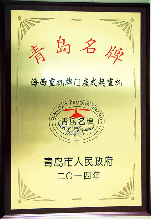 近日,海西重機(jī)門(mén)座式起重機(jī)被青島市人民政府授予“青島名牌”榮譽(yù)稱(chēng)號(hào),并頒發(fā)證書(shū)。